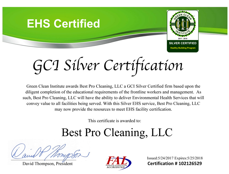 BestPro Cleaning, LLC is GCI Green Cleaning Gold certified firm that addresses key environmental concerns that are associated with commercial, institutional and industrial facilities. Our environmentally friendly services address such issues as solid waste management and minimization, environmentally safe cleaning products & equipment, and indoor air quality.